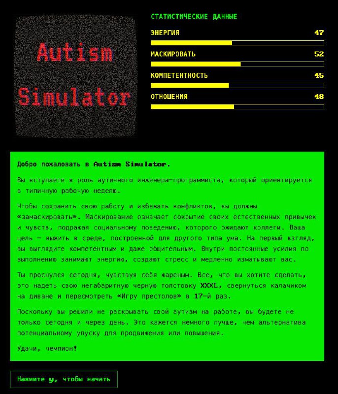 😂 Must-have: «симулятор программиста-аутиста» Можно поиграть за разраба, пытающего в социум и работать корректно, а т…